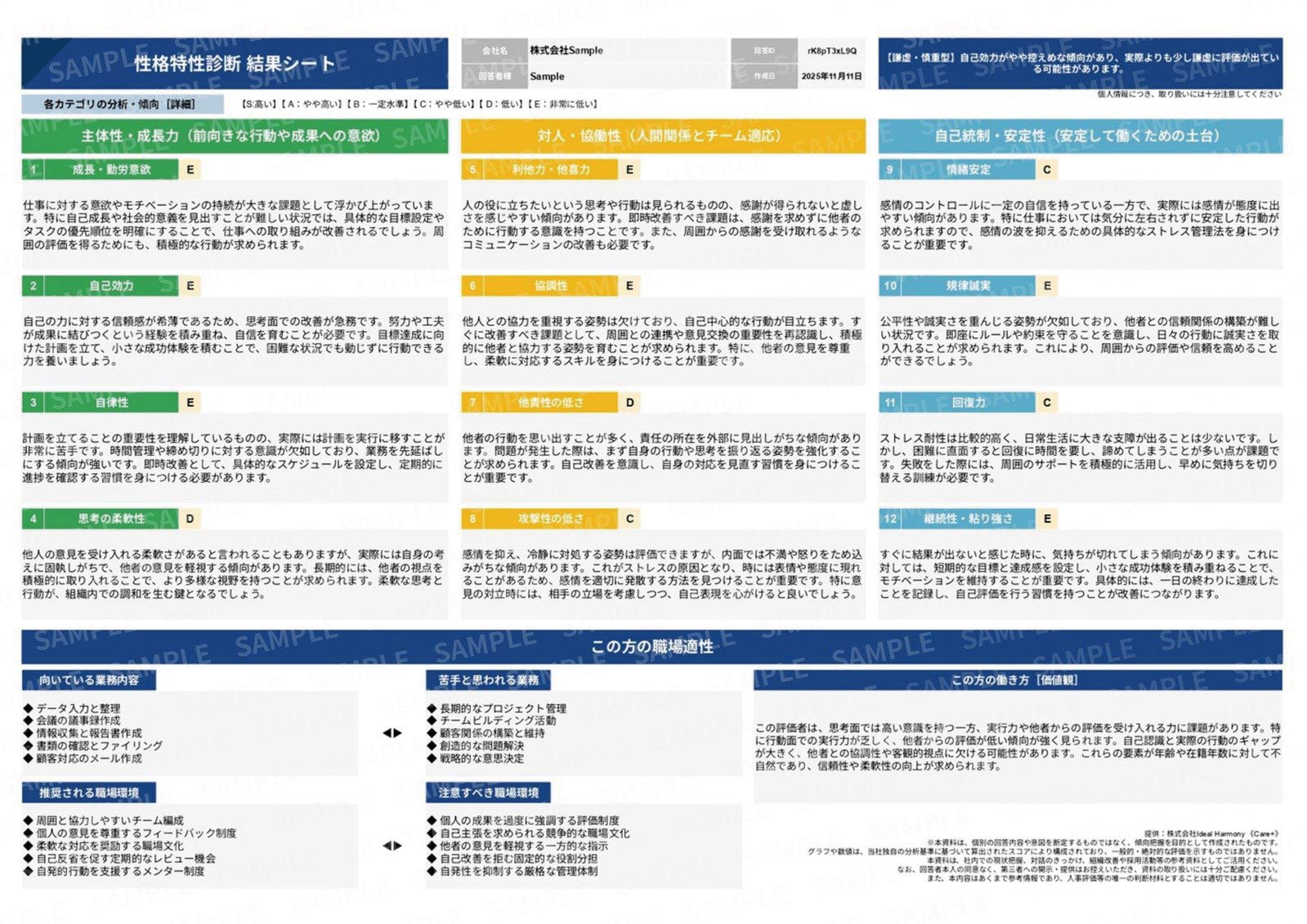 | 職務適性 | ◯ | ◯ | ◎ | 職務の適正を詳細に判定していない |